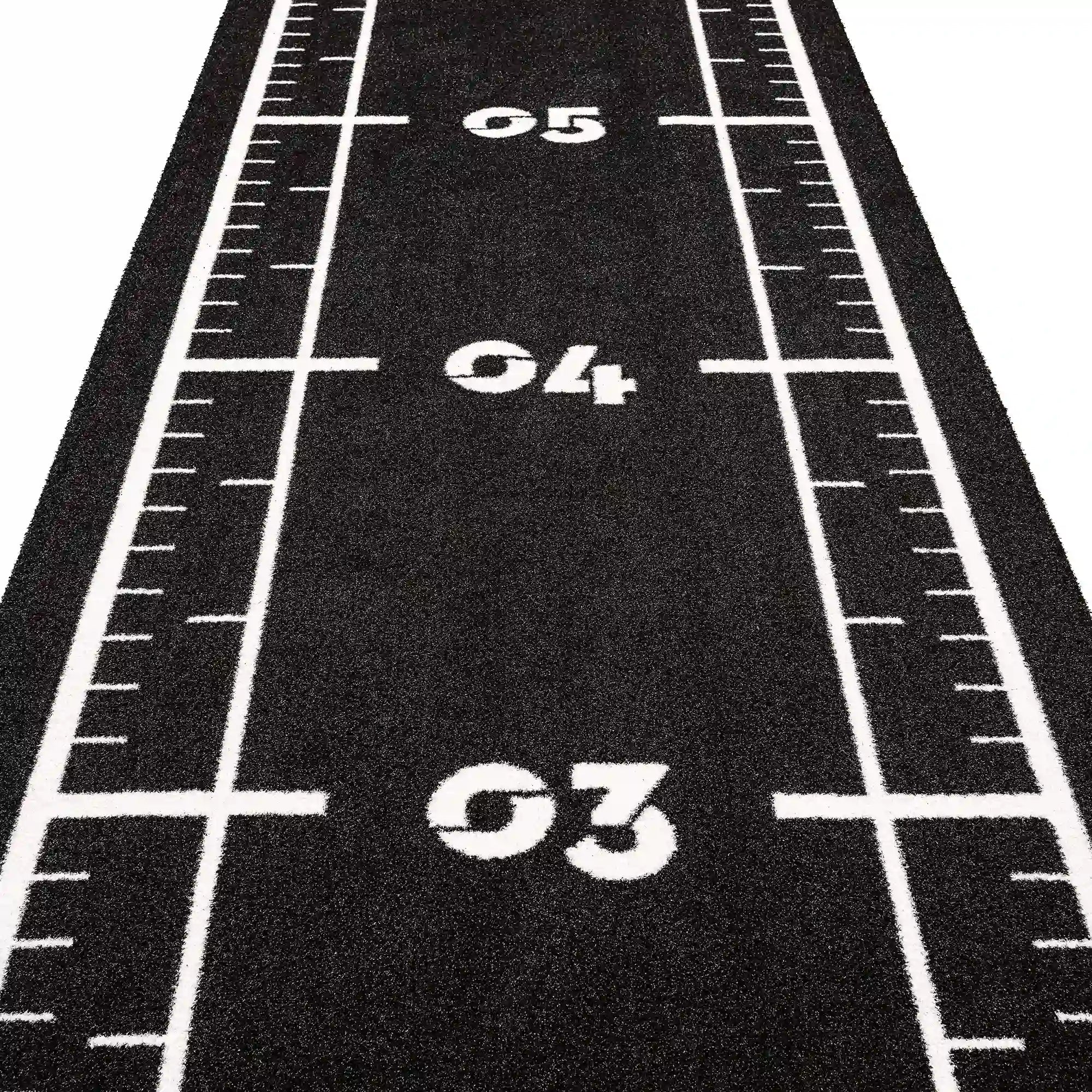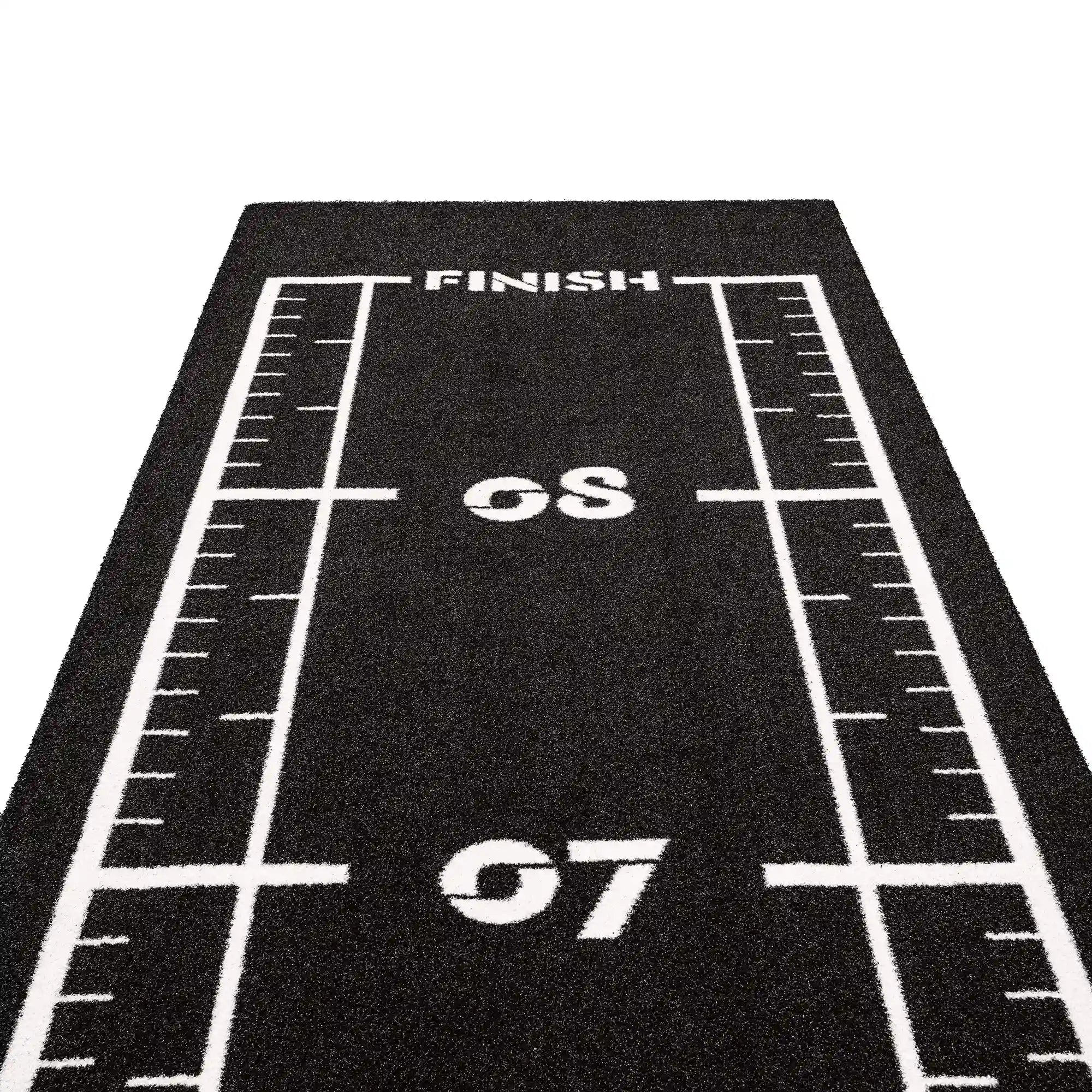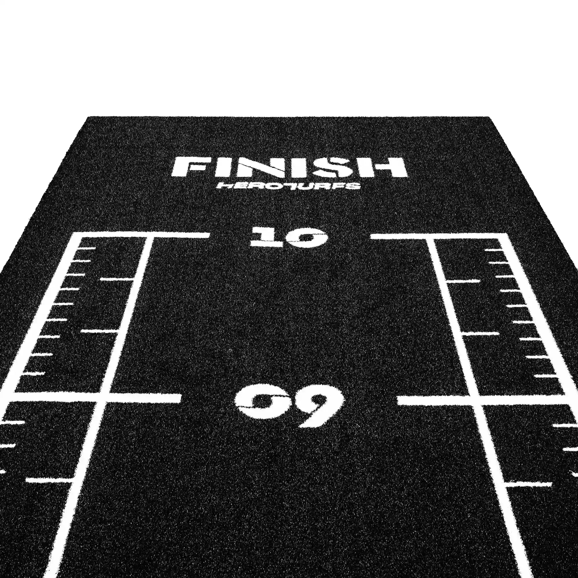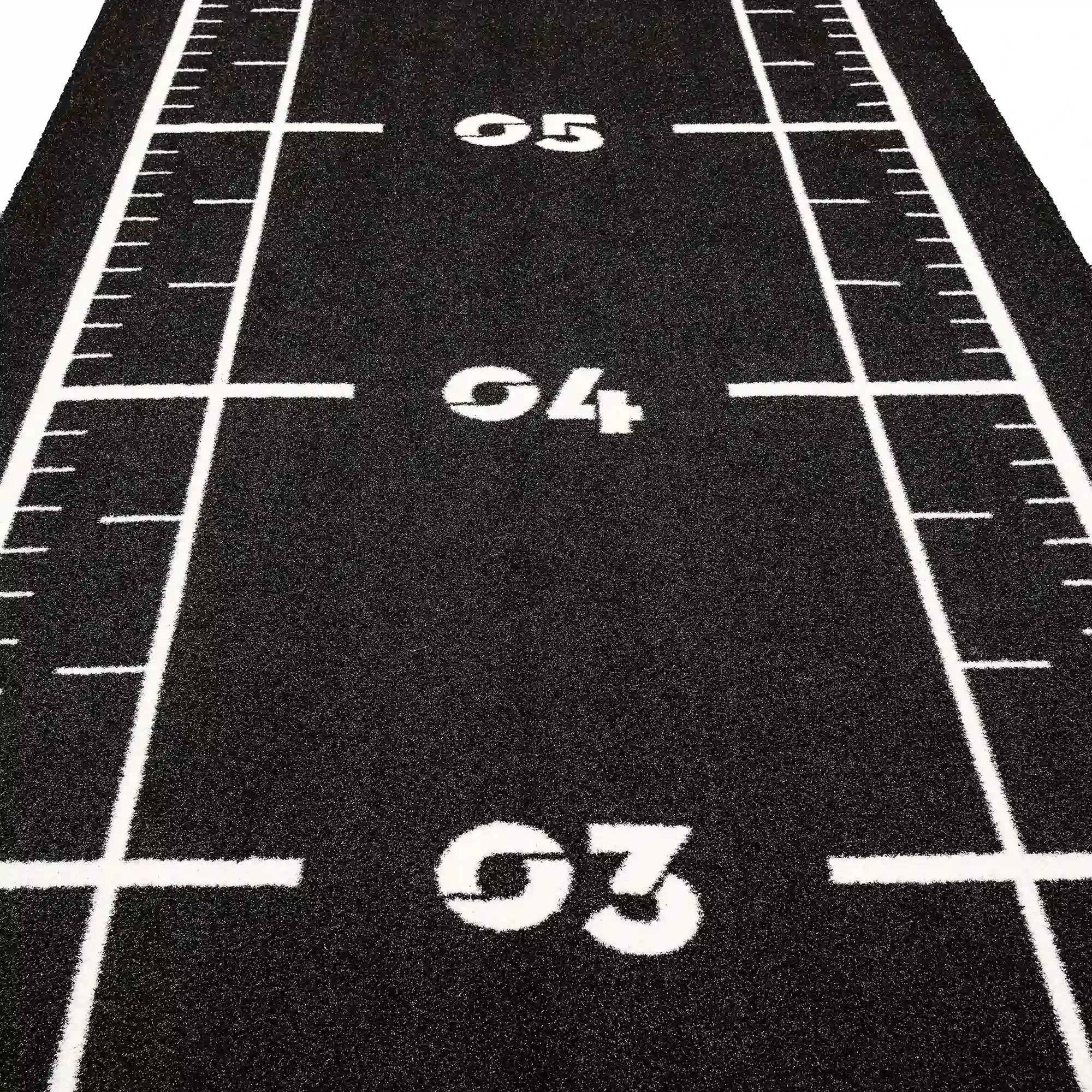 High-performance black sled track with integrated white lines and numbers. Designed for functional training, sled workouts, and high-intensity fitness zones.