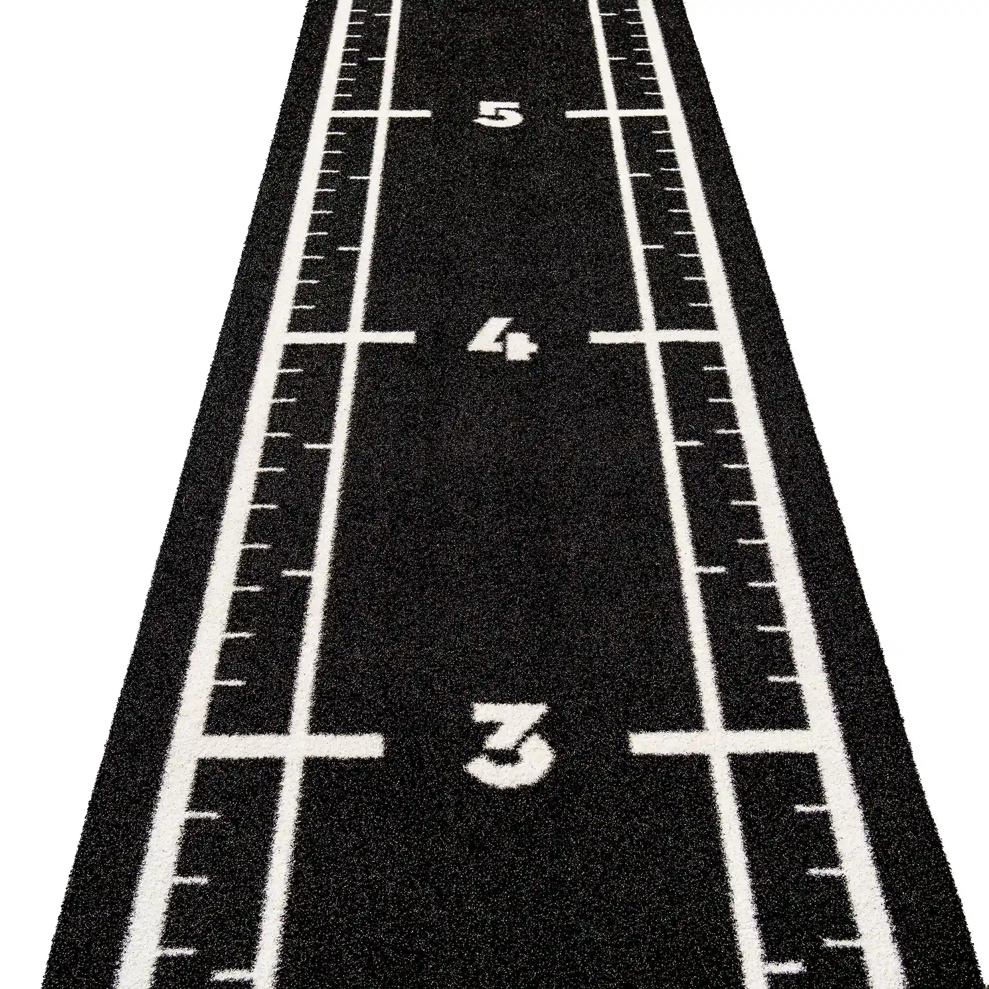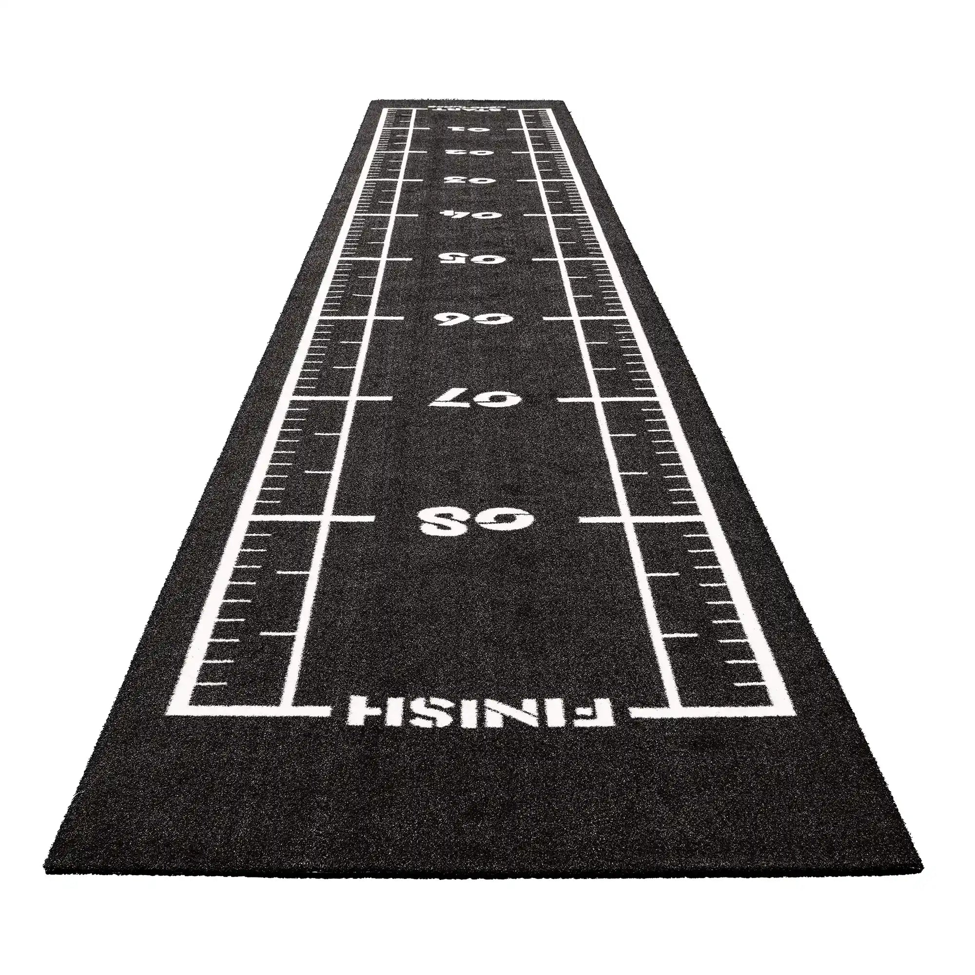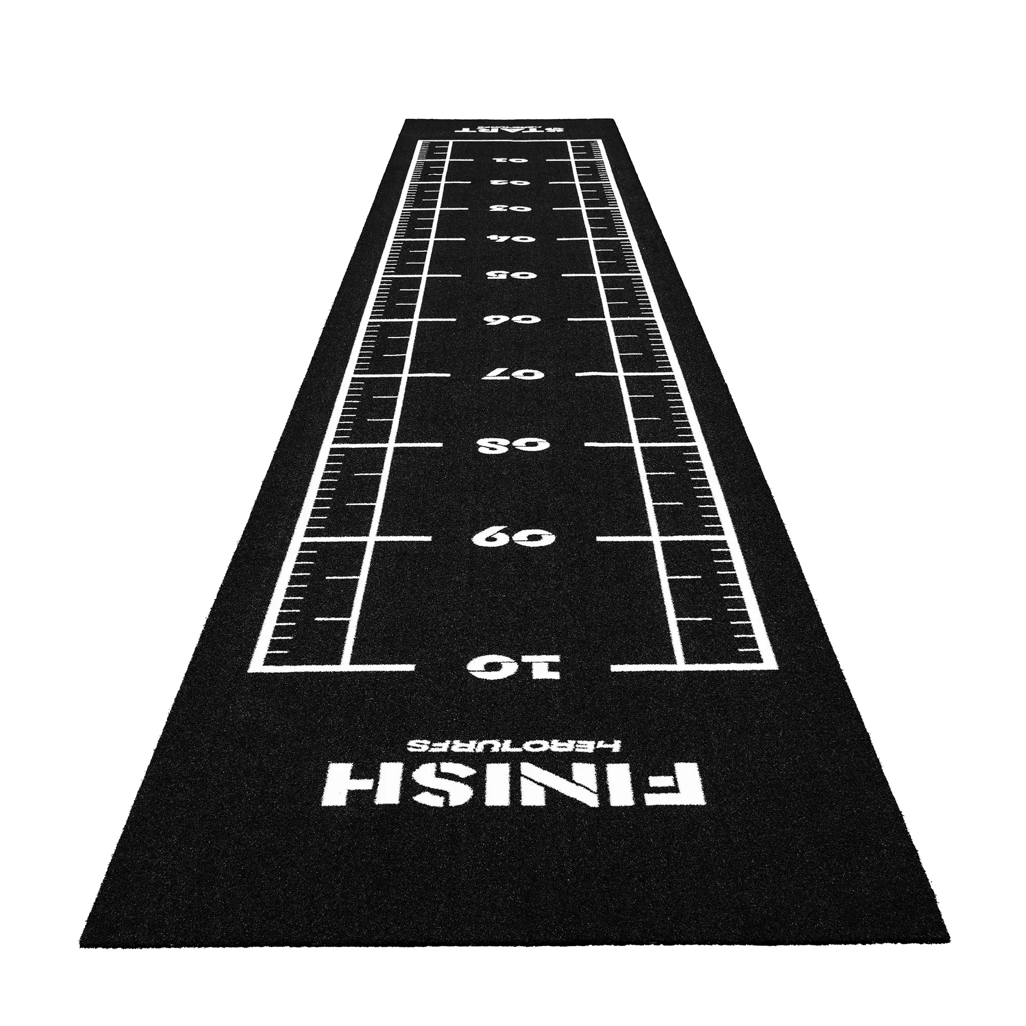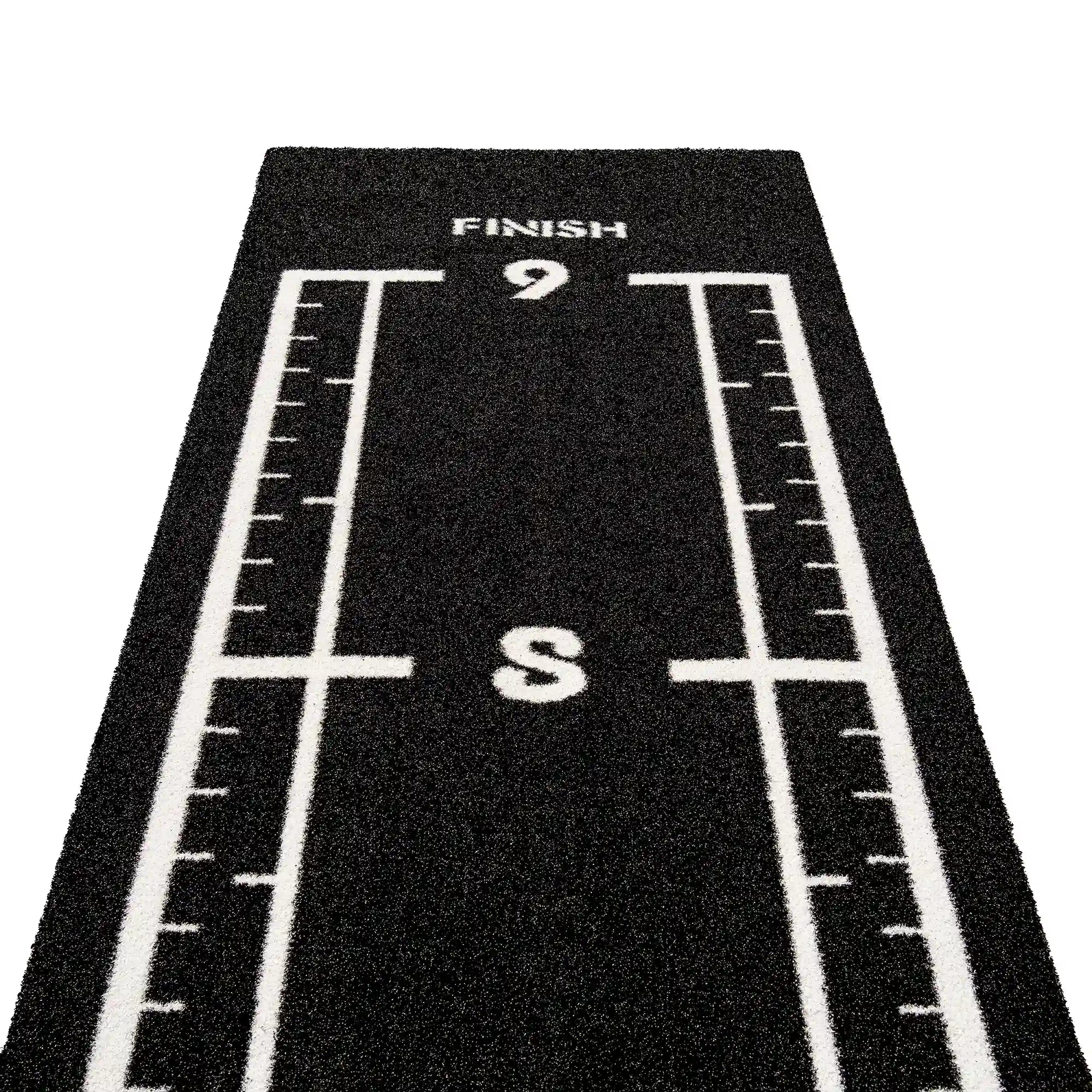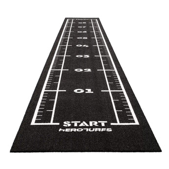 High-performance black sled track with integrated white lines and numbers. Designed for functional training, sled workouts, and high-intensity fitness zones.