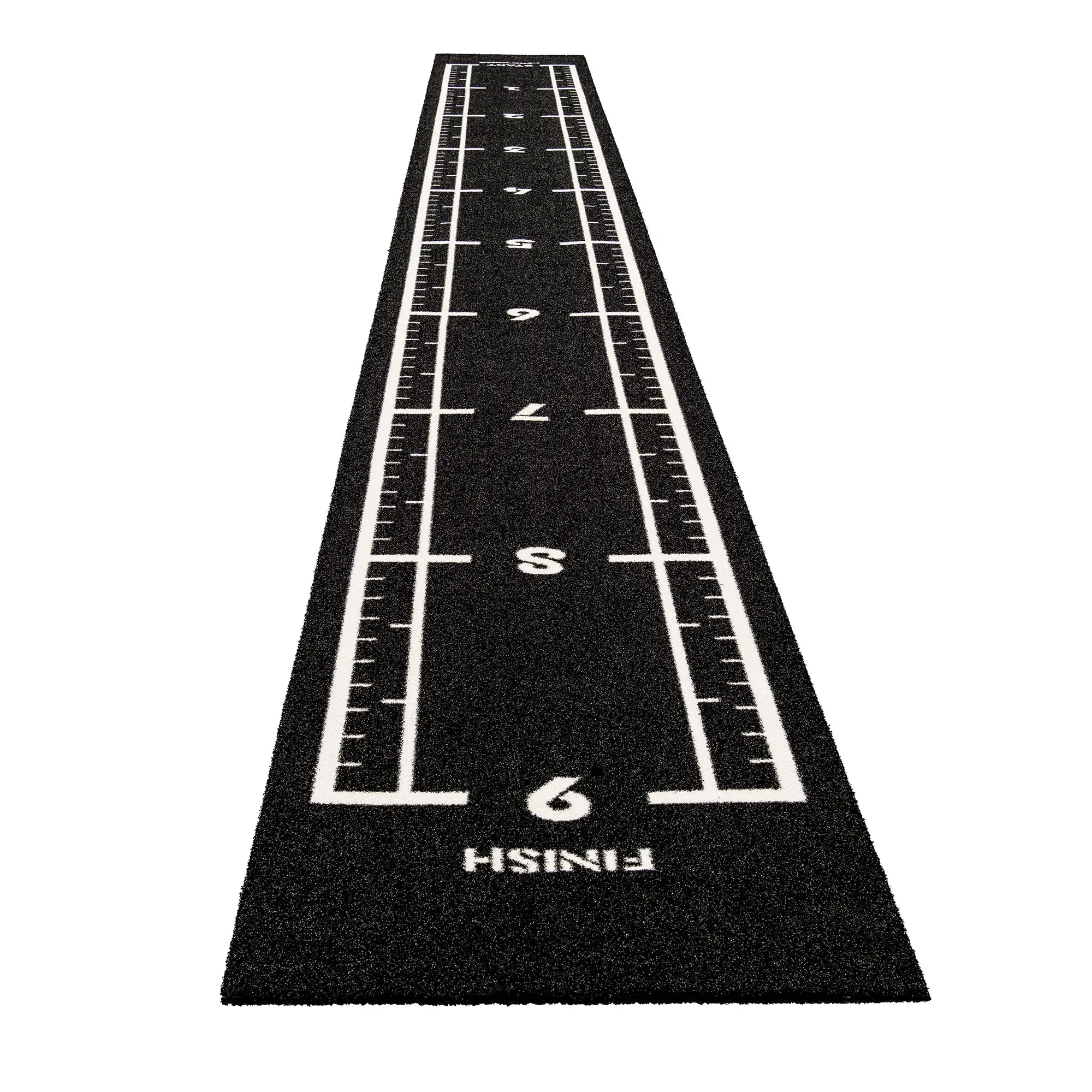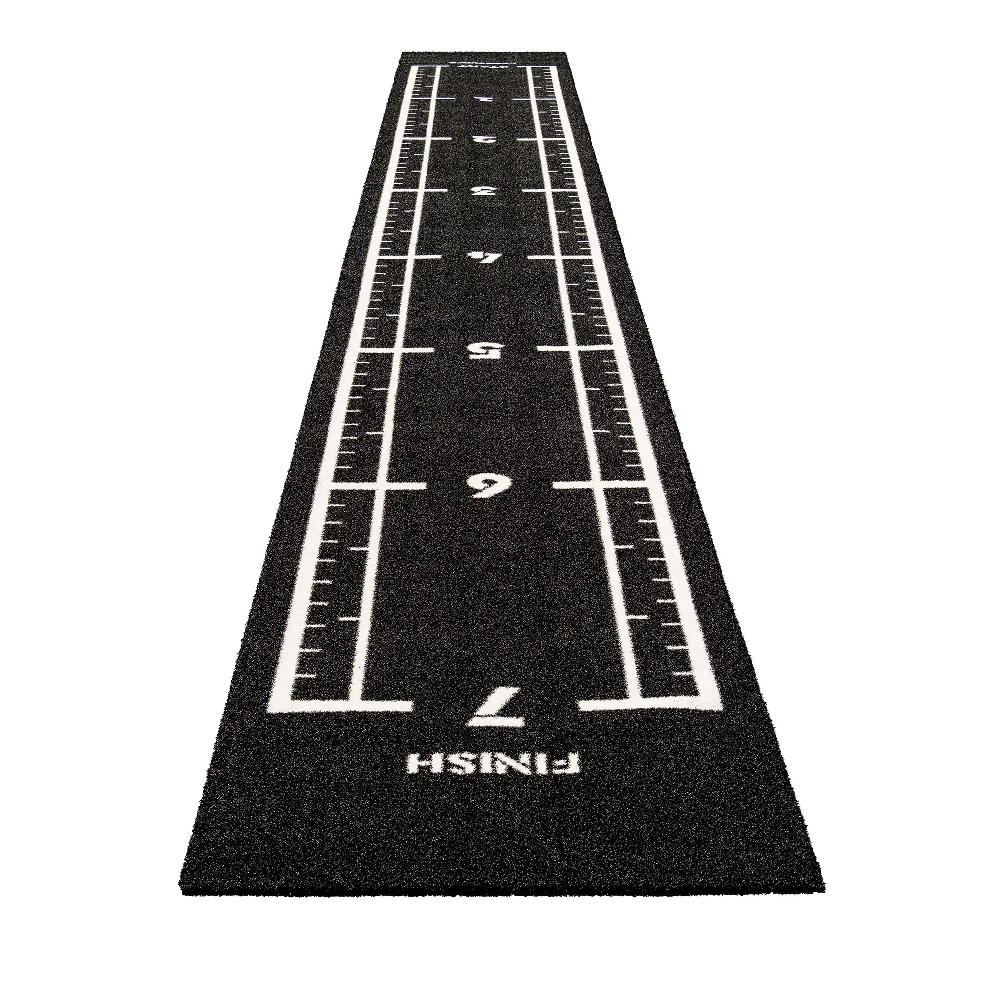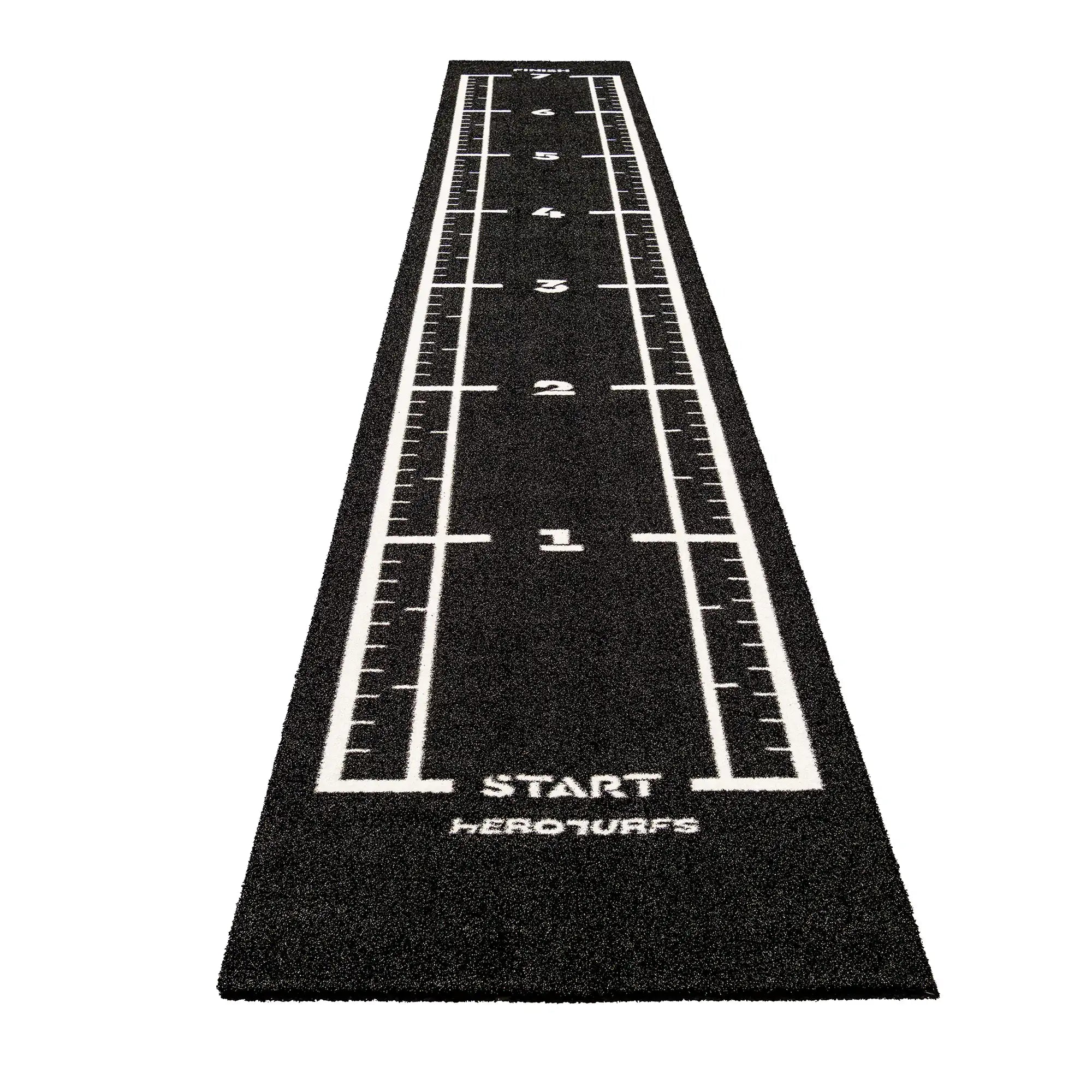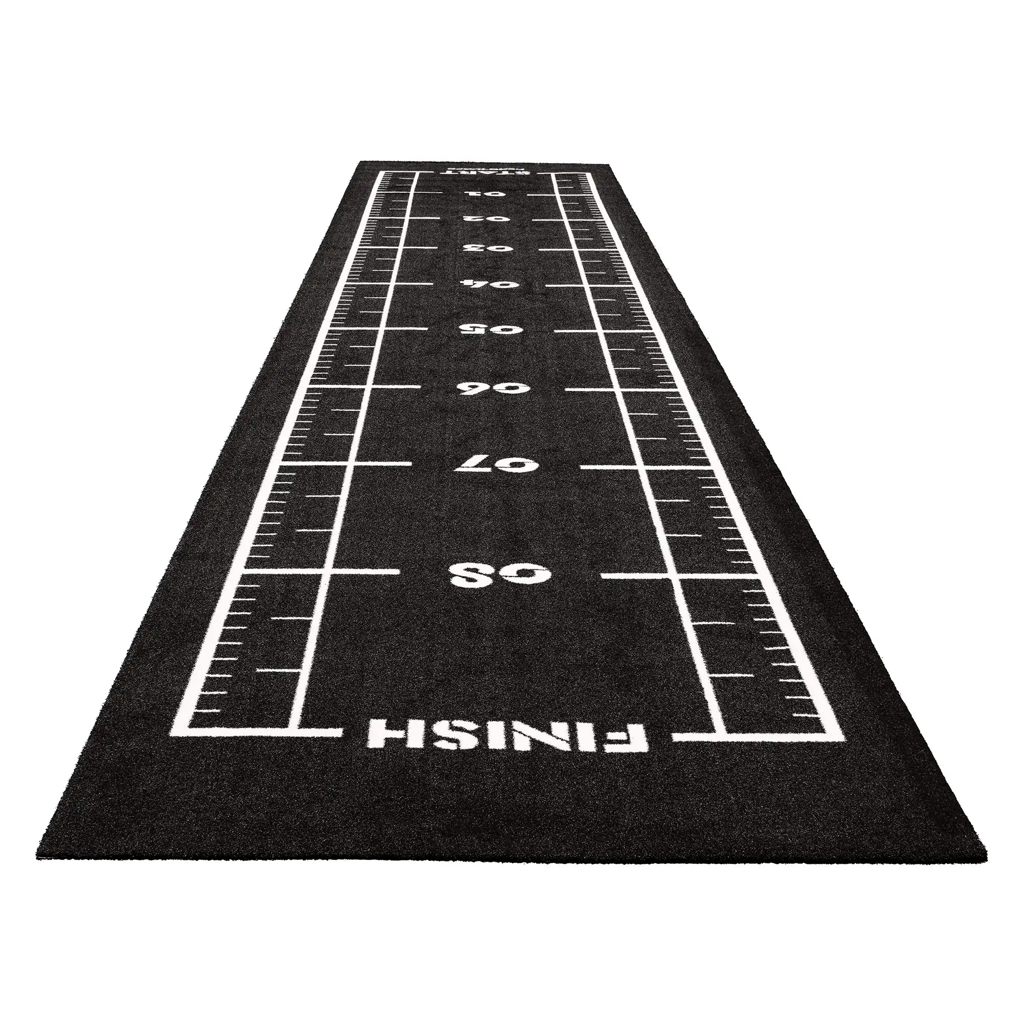 High-performance black sled track with integrated white lines and numbers. Designed for functional training, sled workouts, and high-intensity fitness zones.