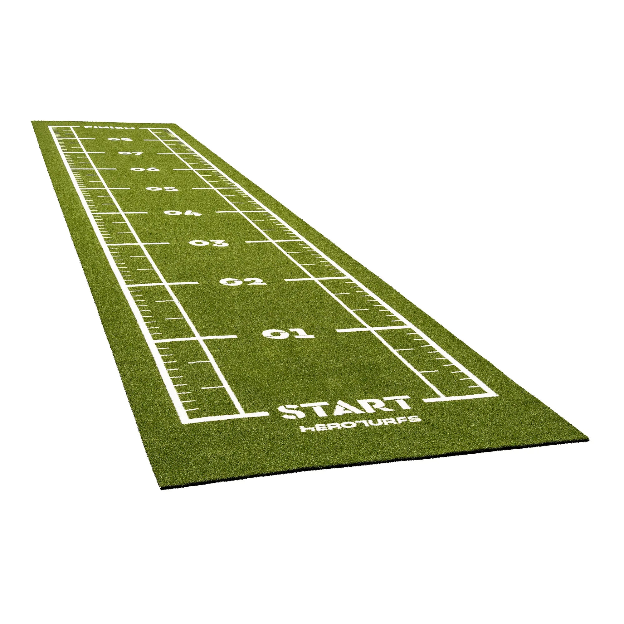 If you're looking for a turf track with your own logo, colors, and dimensions, we can make it happen. You can learn more about our custom turf service here.