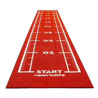 If you're looking for a turf track with your own logo, colors, and dimensions, we can make it happen. You can learn more about our custom turf service here.